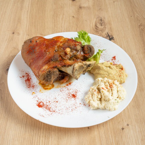 podawany z ziemniakami i zestawem surówek -