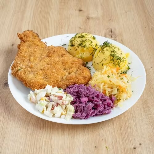 Schabowy XL ziemniaki, kapusta zasmażana